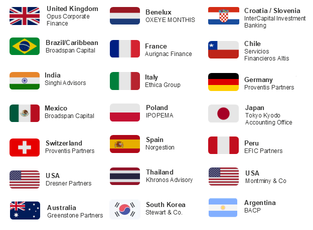 Mergers Alliance is the premier international partnership of market leading financial advisory firms across most major economies in the industrialized world, supporting its member firms through unparalleled information exchange, extraordinary teamwork, and trusted personal/professional relationships.